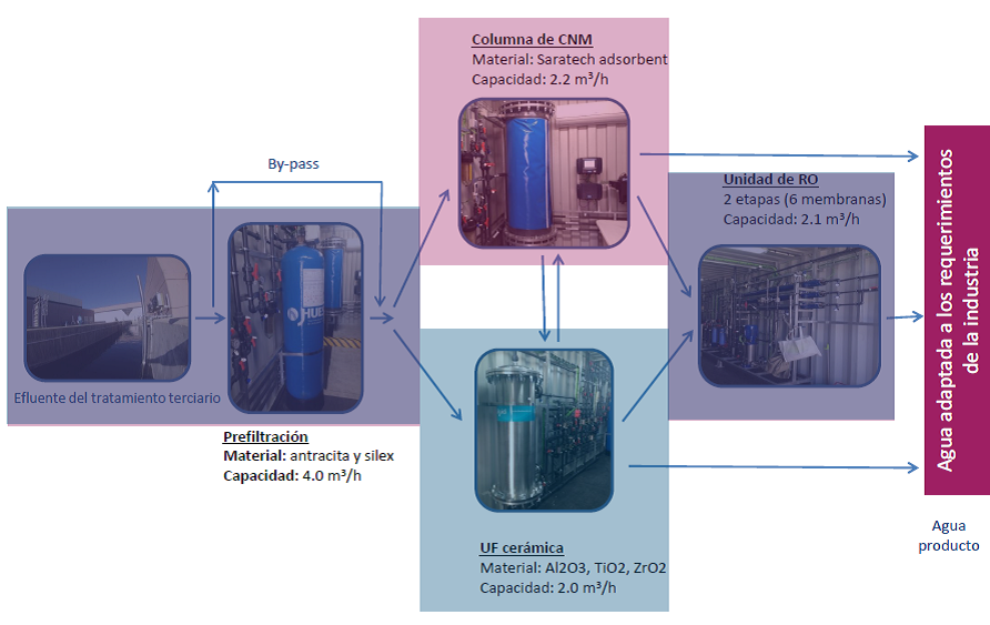El proyecto LIFE WIRE se centra en el desarrollo de un sistema de tratamiento de aguas residuales que permita un reciclaje flexible y eficiente de las aguas residuales urbanas de diferentes calidades y su uso en la industria química, la gestión de residuos líquidos y el electrorecubrimiento. Esto se consigue con la combinación y la optimización de la ultrafiltración (UF), los materiales nanoestructurados del carbono (CNM) y las tecnologías de ósmosis inversa (RO).