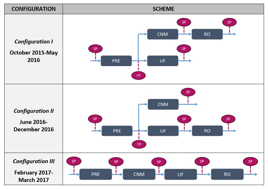 - Escenario C: tratamiento continuo con inyección de agua regenerada en el acuífero del delta del Llobregat, suministro de aguas regeneradas en las zonas húmedas del delta del Llobregat y mantenimiento del caudal del río Llobregat a partir del azud de Molins de Rei.