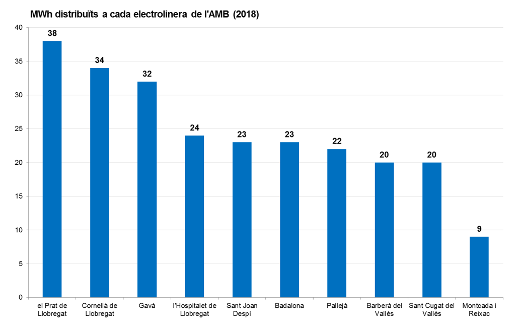 Durant l'any 2018, l'increment mensual mitjà de la demanda d'energia als punts de recàrrega de l'AMB va ser del 3,8%.